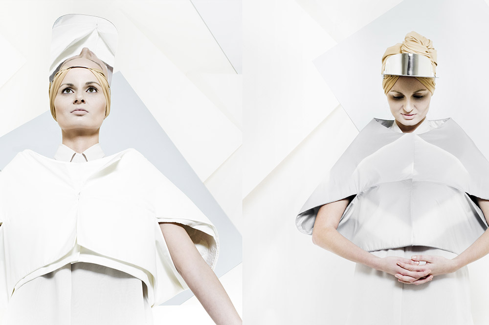 LEM is a fashion label specializing in womenswear with a commitment to quality craftsmanship. Interested in the crossover between art, fashion and design, LEM frequently explores a conceptual form. Its creator, the Czech designer Lucie Erban Mares, is now presenting a new collection for 2016 called Monochromatic. It was inspired by the colour derived from a mirror reflection. The scale of colours taken from a photograph of the mirror surface creates a monochromatic composition comprising of shades of white, grey, and black. The photograph of the mirror surface is printed on fabric which becomes the bearer of information about the actual colour of reflection.