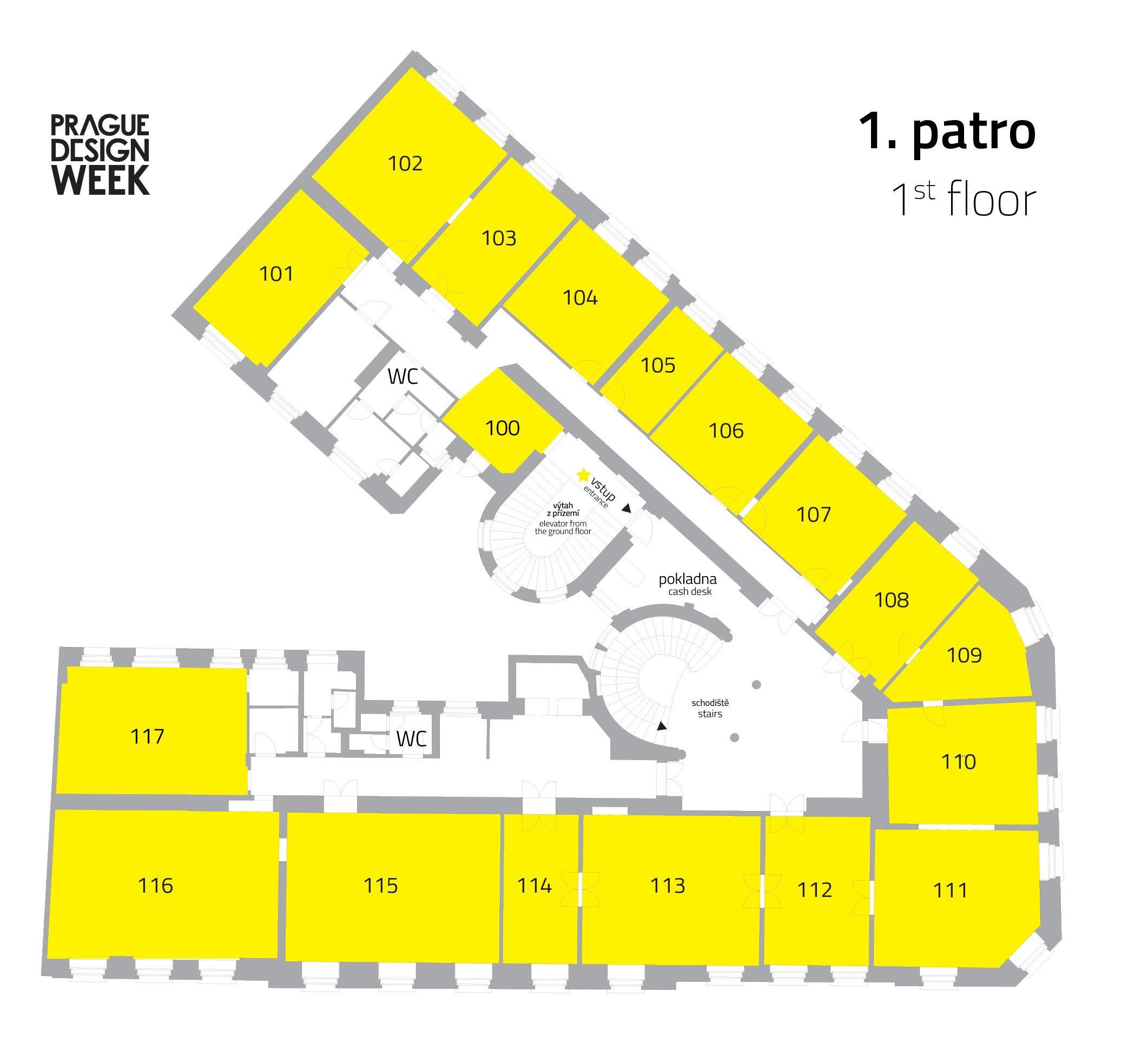 Entrance from Králodvorská 16 from Kotva department store. Lift from the raised ground floor to the 1st floor. Unfortunately, the event is not wheelchair accessible. Prams can be left on the 1st floor behind the box office (unguarded).